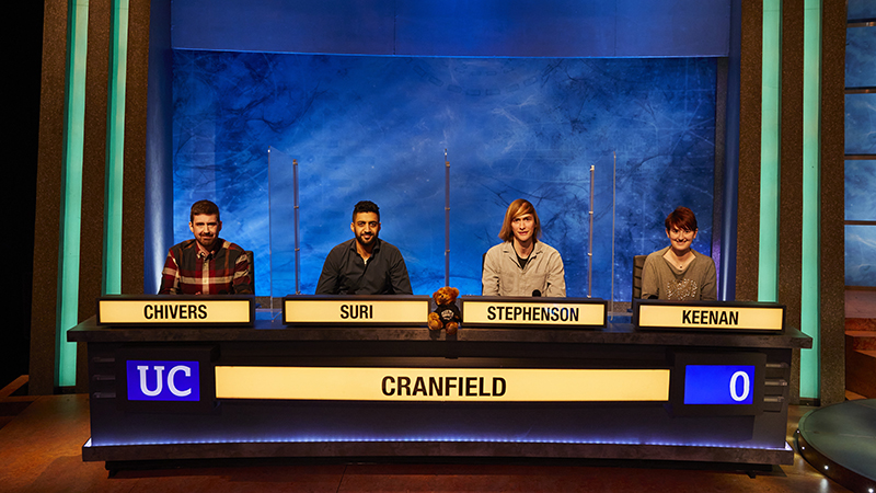 Cranfield’s double act of Keenan and Suri take another ten points each to reclaim the lead for the Bedfordshire quartet, but Harvey swiftly pegs them back with a starter of his own, and Holloway are five clear going into the music round.
