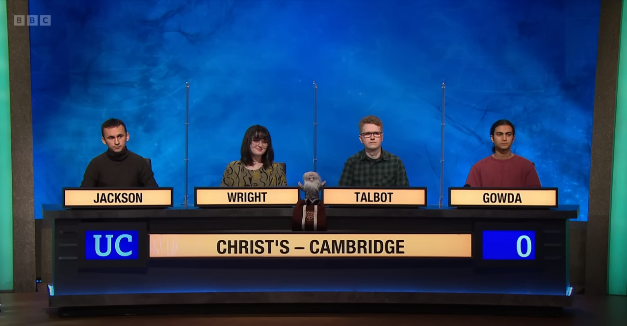 Both sides miss a ten pointer on the US space program, but a brilliant buzz from Jackson on Peter Rabbit tied the game for the Cambridge side. They grab a couple of bonuses on Scottish waterways to take the lead before a starter from Gowda sealed their comeback win.