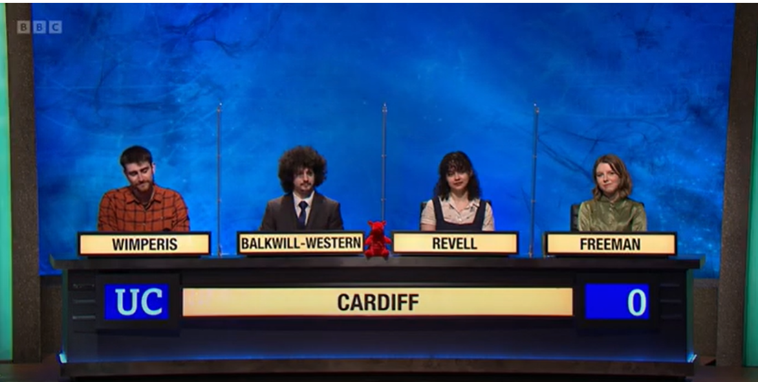 Will Balkwill-Western, one letter away from having the nickname 'Woman Crush Wednesday', takes the next starter. A second for Wimperis, along with some competent bonus-work, gave Cardiff the lead, which they duly squandered. No matter though, because Newnham kept up their form on the bonuses - they were now three for fifteen, going into the music round.
