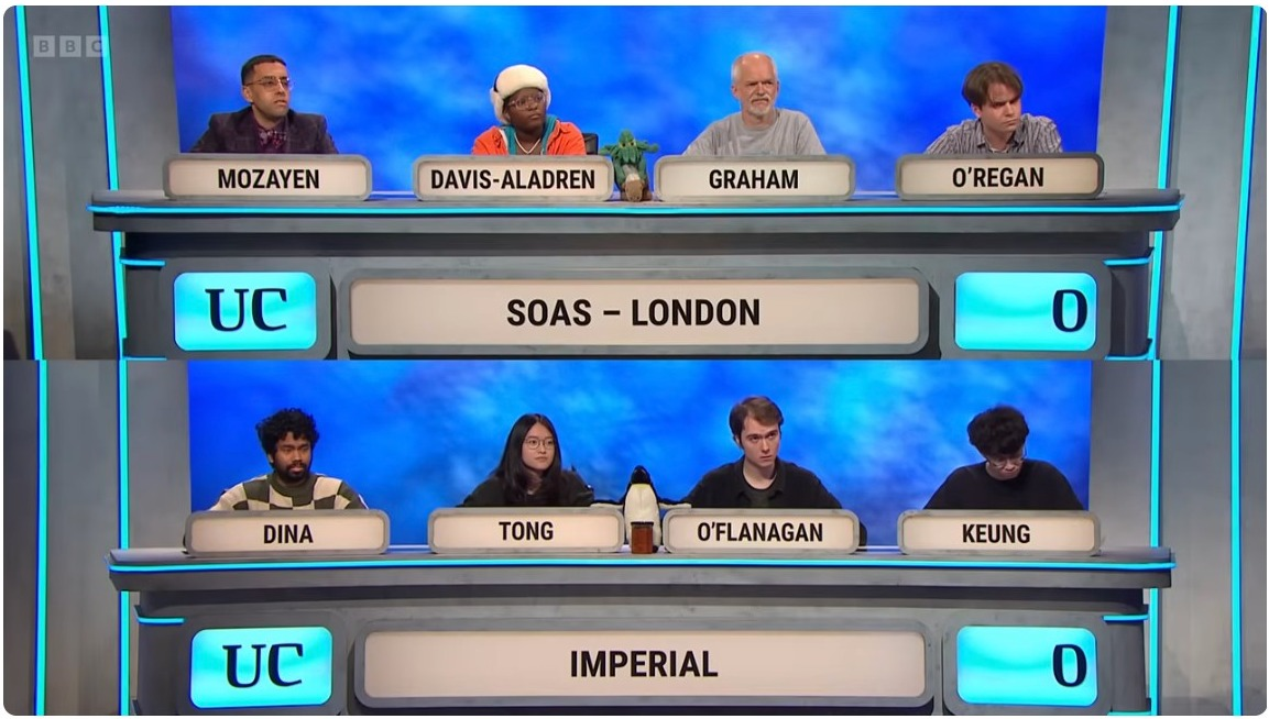 SOAS played UCL in their first round match, and I estimated their proximity to be among the highest of all non-collegiate University Challenge teams, with the walk between their campuses coming in under a breezy ten minutes.